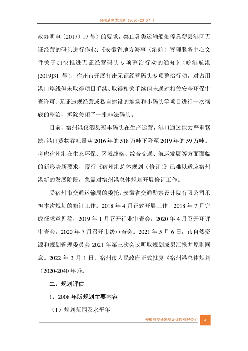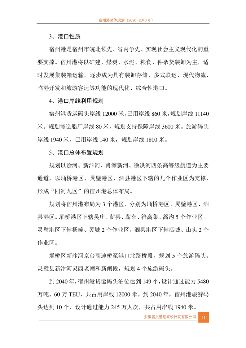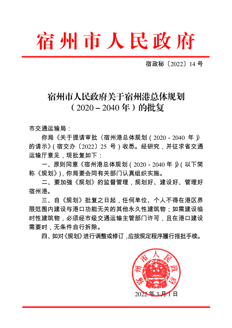 宿州市人民政府关于宿州港总体规划(2020-2040年)的批复
