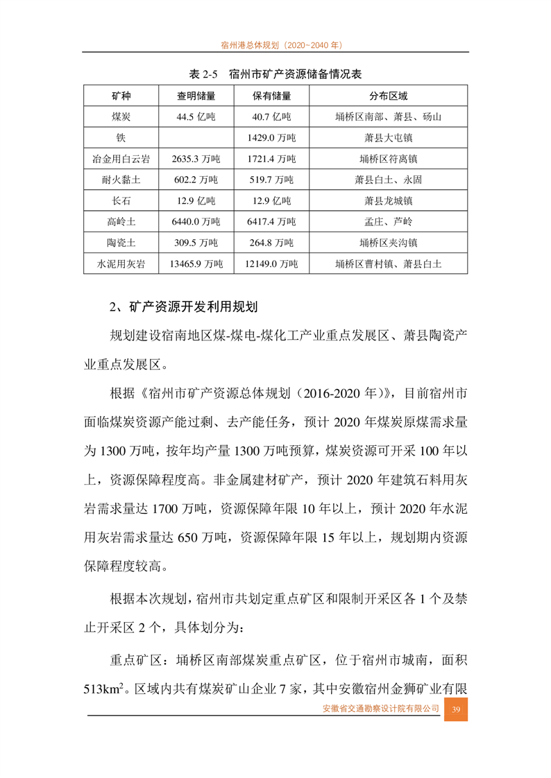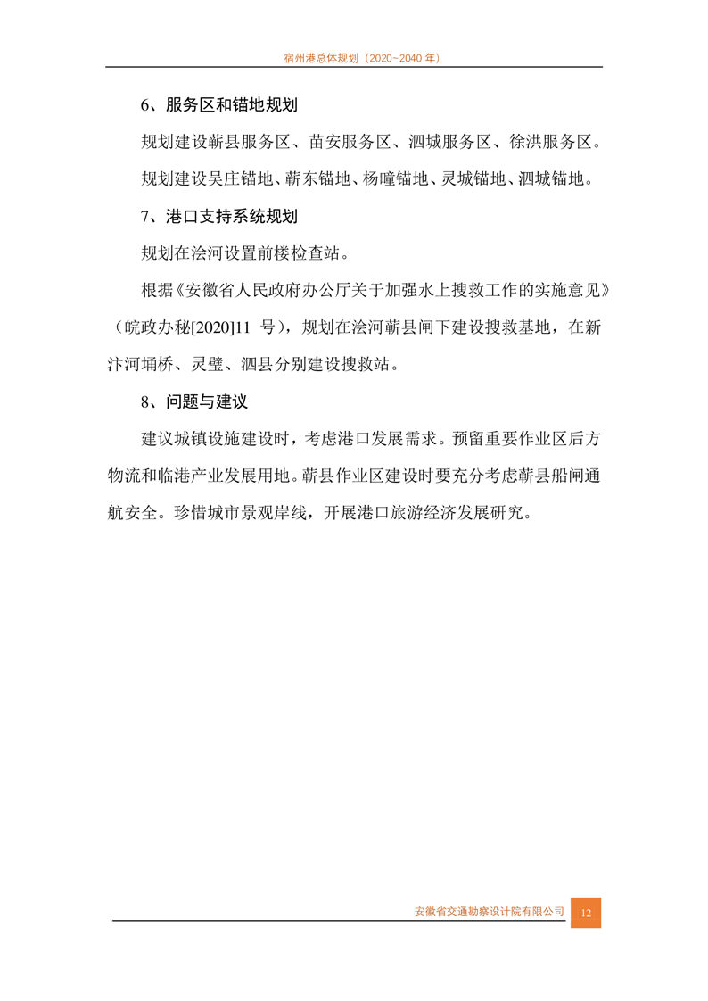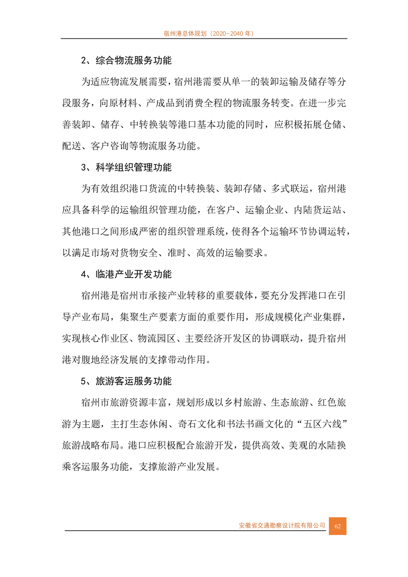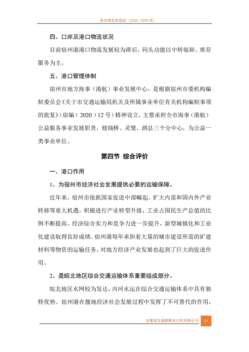宿州市人民政府关于宿州港总体规划(2020-2040年)的批复