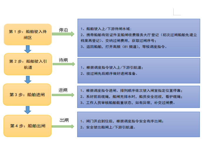 (三)船舶过闸排序原则:原则上按照船舶到闸先后次序安排过闸。