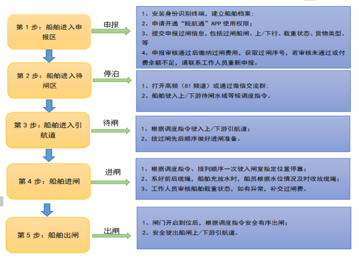 注:1.船舶申报登记成功后如临时改变航行路线,应向船闸调度中心报告情况;