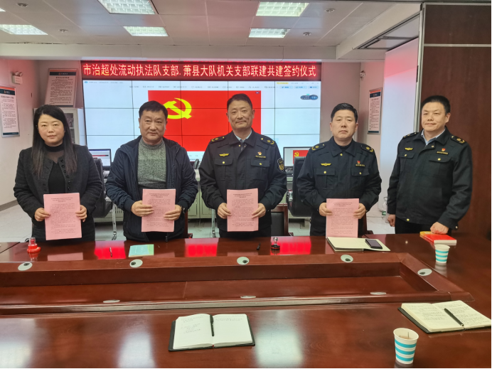 在萧县交通运输综合行政执法大队党员活动室,两个支部现场签订《党支部联建共建协议书》,明确建立 “组织建设互促、党员干部互动、党建载体互用、业务发展共赢” 四项机制,双方本着“以共建促党建、以共建促了解、以共建促业务、以共建促发展”的原则,全方位打造党建品牌,通过联建共建活动实现资源共享、优势互补、共同提升的党建工作新格局,不断增强党支部的创造力、凝聚力、战斗力;推动党建工作与治超业务深度融合,破解基层治理难点,打造治理共同体;树立具有治超特色的联建共建品牌,形成可复制推广的“治超管理部门—基层组织”协作经验。