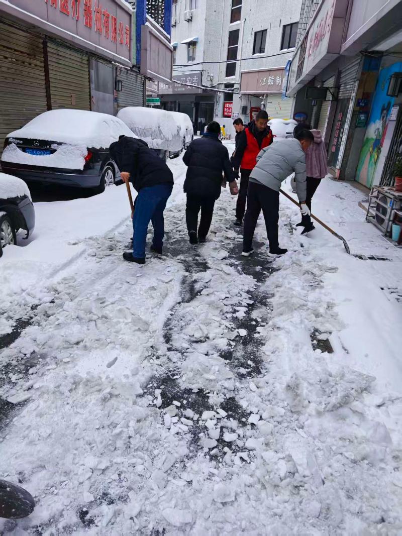 1月20日上午,中心机关联合埇桥区分中心全体党员清扫社区路段、居民楼栋前积雪,确保社区干道与群众出行关键点位畅通安全;主动协助清理商户门前积雪,提醒做好水管防冻和安全用火用电工作,获得社区居民的广泛认可。