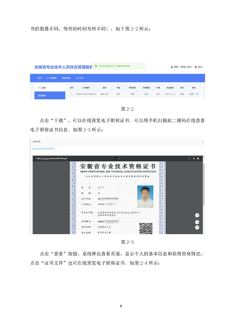 安徽省专业技术人员综合管理服务平台电子职称证书管理操作手册