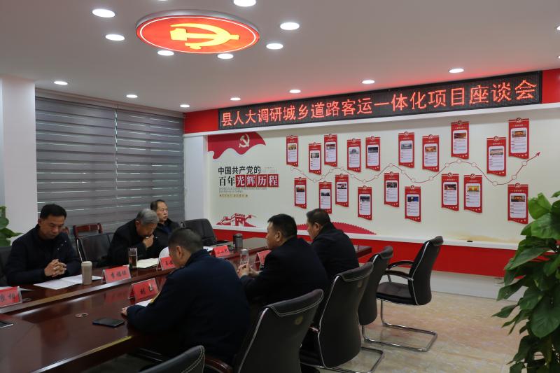 在县交通运输局二楼会议室调研组人大领导们就扎实推进我县城乡道路客运一体化改革实施工作进行了深入座谈。