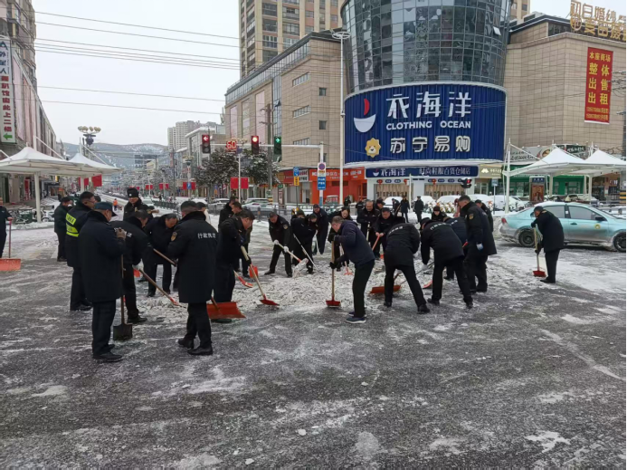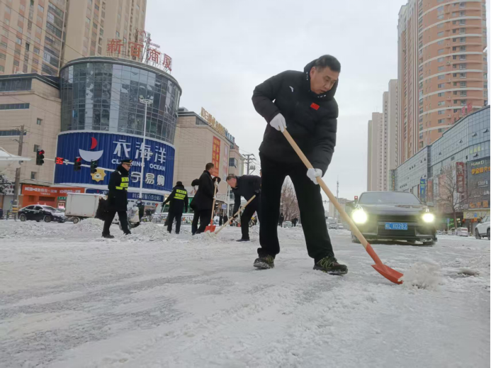 19日夜间的暴雪积了一扎多厚,被车辆碾压后,变得又硬又滑,街道俨然变成了溜冰场,交通出行面临严峻挑战。刻不容缓,局领导班子靠前指挥、身先士卒,行动分工明确、紧张有序,铲车轰鸣开辟主干道,干部职工挥锹清除人行道。大家不畏寒风刺骨,干得热火朝天。铲车打通紧急通道之后,人工又随后进行精细化收尾,除雪队伍所过之处,路面变得整洁敞亮。辛苦忙碌的劳作之后,责任路段的除雪保畅工作已完美收官。望着街道上车流如梭、通行如常,所有疲惫都化成了同志们们脸上欣慰的笑容。